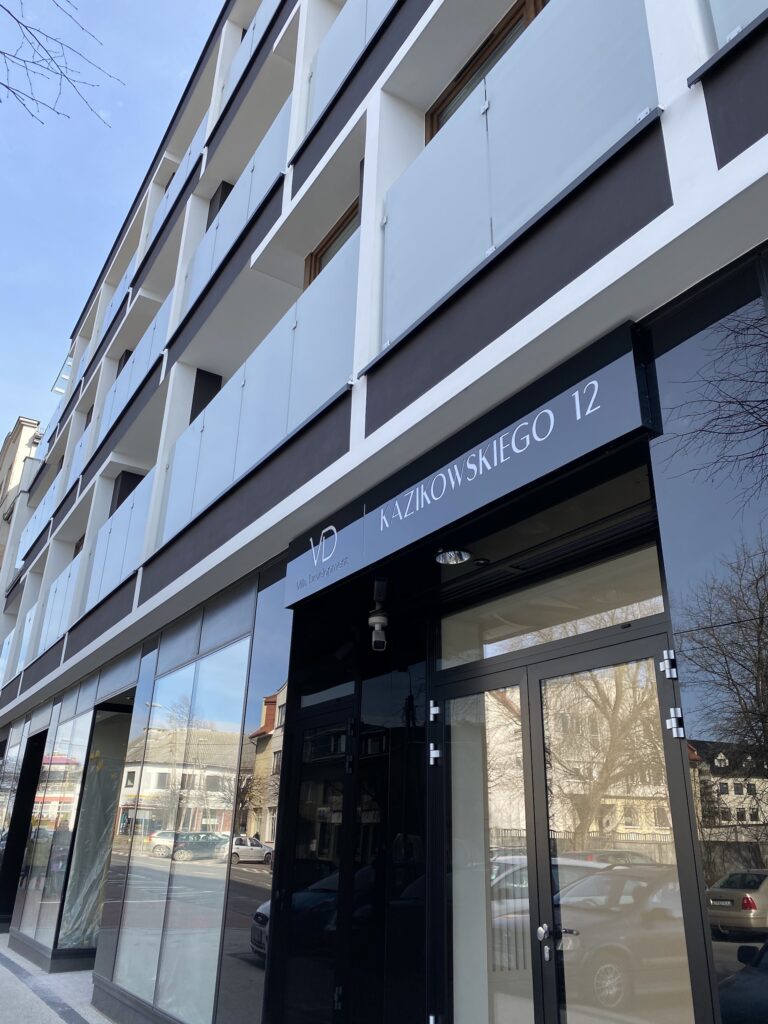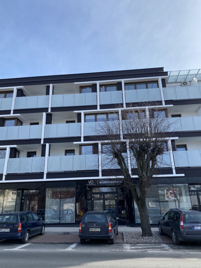 Trzypiętrowy nowoczesny budynek mieszkalny wielorodzinny z lokalami usługowymi, podziemnym parkingiem, windą. Budynek mieszkalny o podwyższonym standardzie – zlokalizowany w samym centrum Mińska Mazowieckiego przy ulicy Kazikowskiego 12.